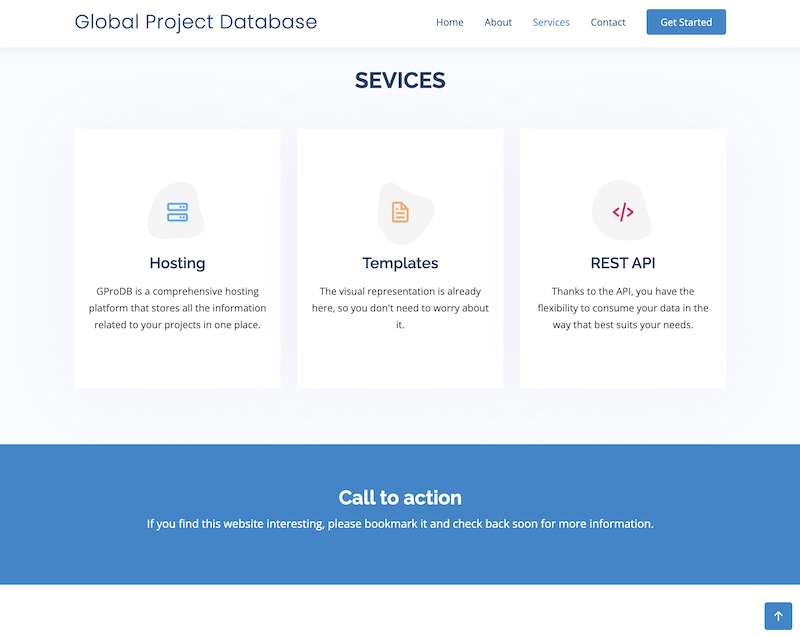 GProDB is a web application that enables quick creation of business landing pages, featuring JsonHub integration for data storage. Future plans include a more user-friendly interface and enhanced search capabilities.